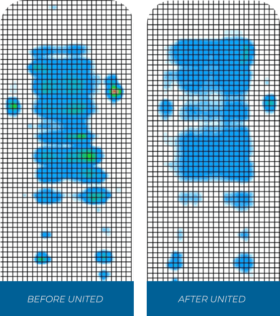 To the right is the same patient (male weighing 180 pounds, 6 feet tall) sitting at an incline of 45 degrees in a hospital bed. While lying on the True Low Air Loss, his average reading is 13.5 mm of Hg, while the average reading on The United Mattress is 8.7 mm of Hg.